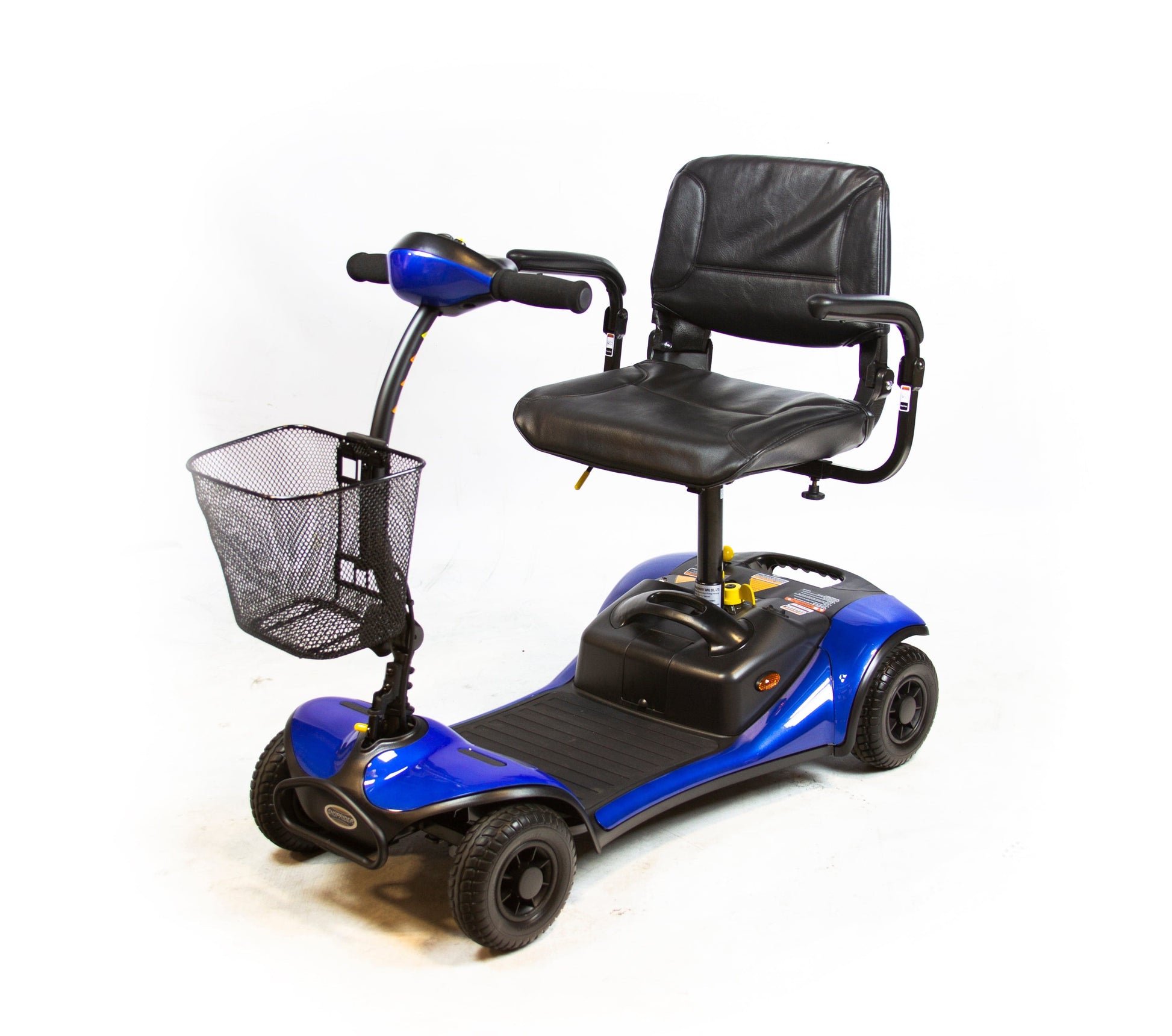 The Dasher 4 Mobility Scooter is designed for the user on the go. It has a 250 lb. weight capacity and has a quick-disconnect system for effortless disassembly. The unit disassembles into three parts, the heaviest weighing just 26 lb. The Dasher 4 Mobility Scooter maneuvers with ease and has an adjustable tiller for added comfort during operation. The Dasher 4 also comes standard with solid tires for a smoother ride and swivel seating system.